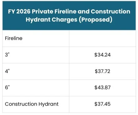 (Above) Fireline and Construction Hydrant Charges: This fee helps pay for water infrastructure to fight fire.
